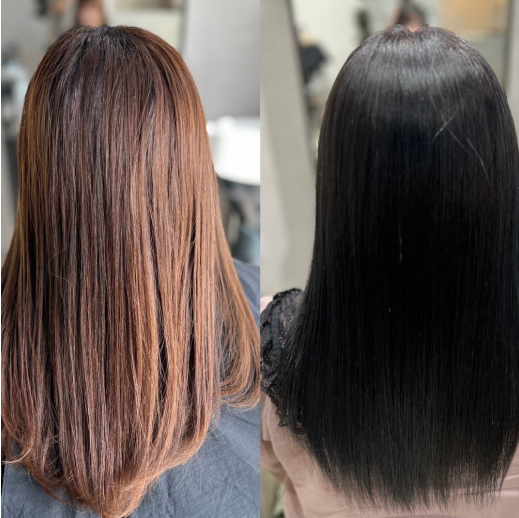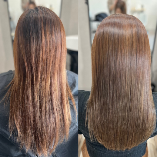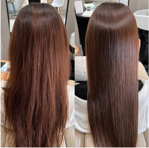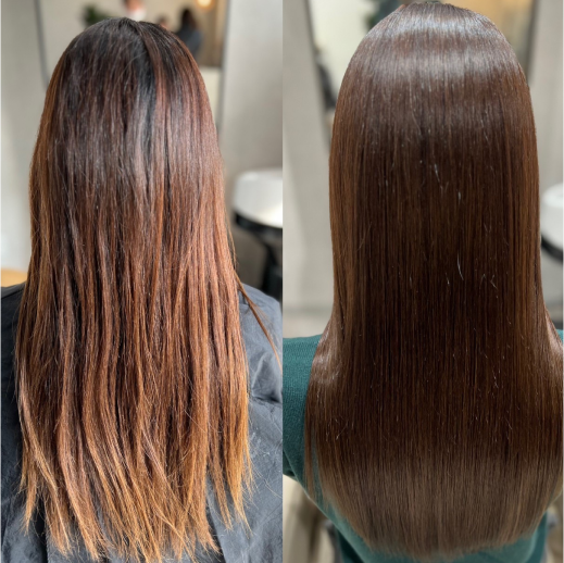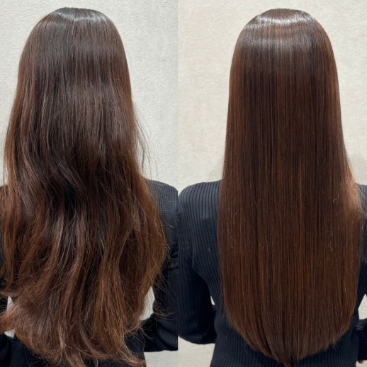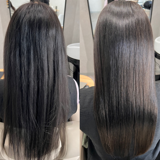 乾かすだけで綺麗に艶々にまとまる髪質を手に入れたお客様の髪の様子をご覧ください。