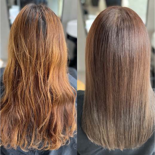 手ぐしで引っかるのがストレスでしたが、Mint leafさんの髪質改善のおかげで艶も取り戻し、髪が扱いやすくなりました!